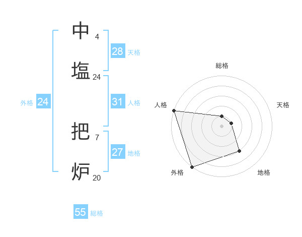 中塩 把炉さんの総格は55画の1点!