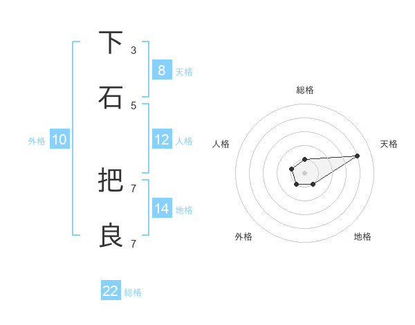 下石 把良さんの総格は22画の1点!
