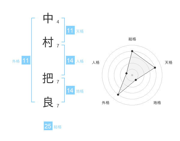 中村 把良さんの総格は25画の4点!