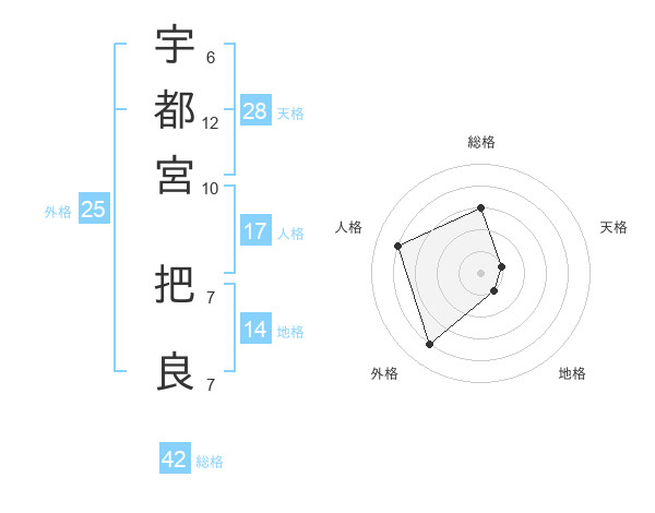 宇都宮 把良さんを姓名の画数から五運を鑑定