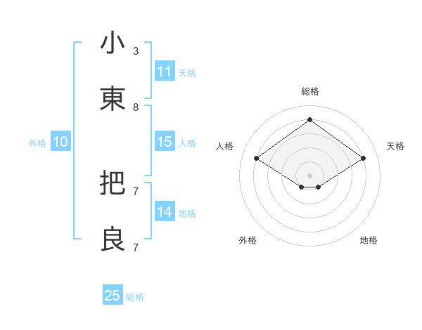 小東 把良さんの総格は25画の4点!
