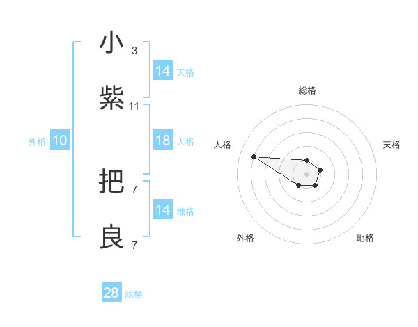 小紫 把良さんの総格は28画の1点!