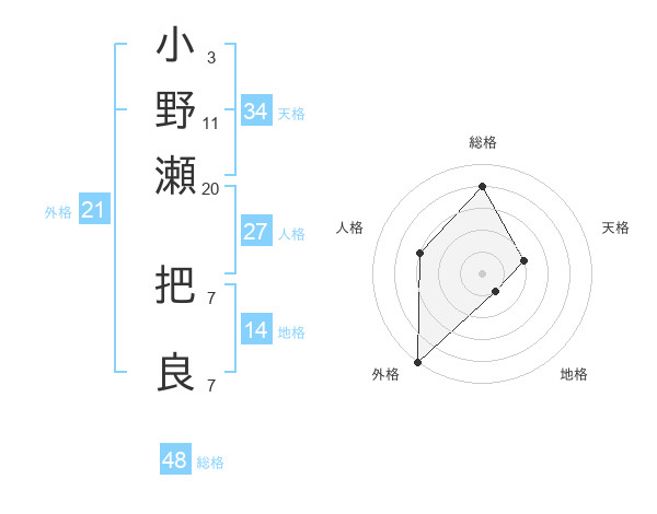 小野瀬 把良さんを姓名の画数から五運を鑑定