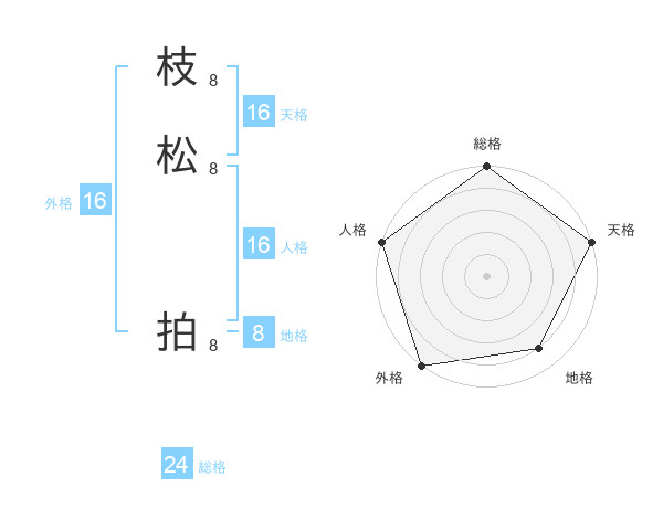 枝松 拍さんの外格は16画の5点!