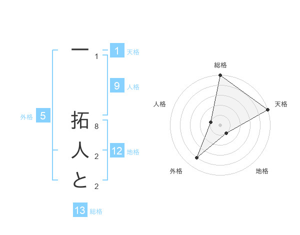 一 拓人とさんの総格は13画の5点!