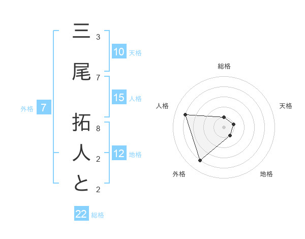 三尾 拓人とさんを姓名の画数から五運を鑑定