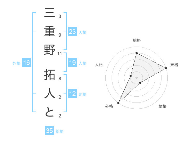 三重野 拓人とさんの天格は23画の5点!