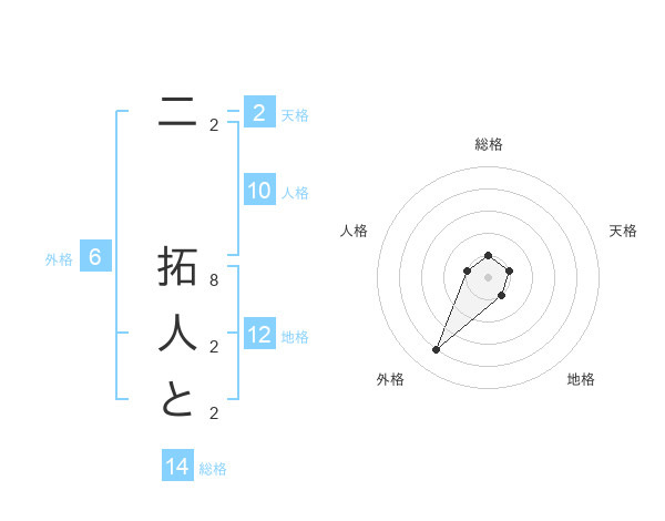 二 拓人とさんの総格は14画の1点!
