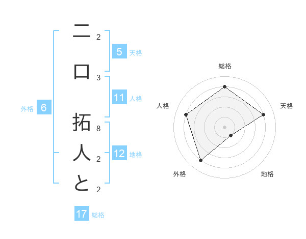 二口 拓人とさんを姓名の画数から五運を鑑定