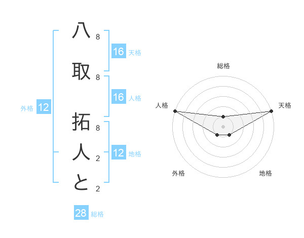 八取 拓人とさんの天格は16画の5点!