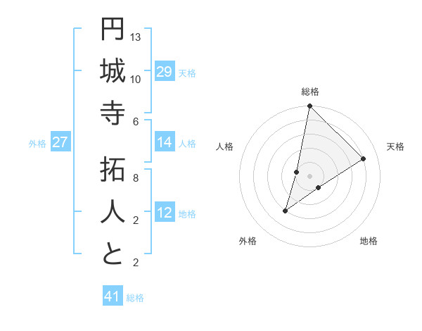 円城寺 拓人とさんを姓名の画数から五運を鑑定