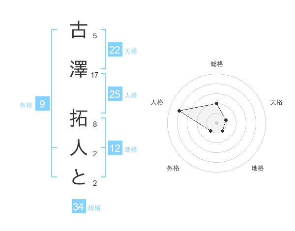 古澤 拓人とさんを姓名の画数から五運を鑑定