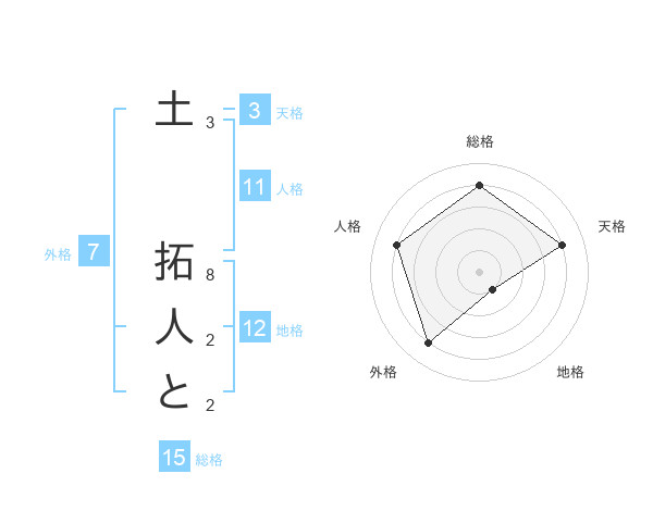 土 拓人とさんの総格は15画の4点!