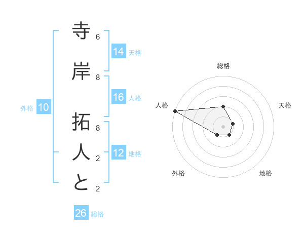 寺岸 拓人とさんの外格は10画の1点!