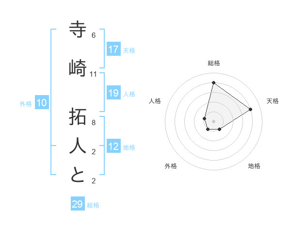 寺崎 拓人とさんの天格は17画の4点!