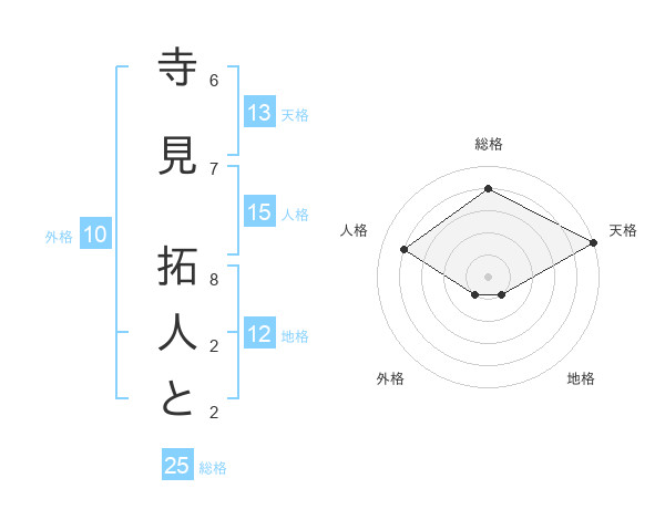 寺見 拓人とさんの天格は13画の5点!