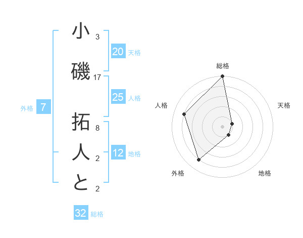 小磯 拓人とさんを姓名の画数から五運を鑑定