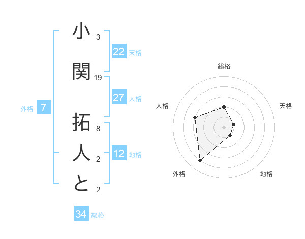 小関 拓人とさんを姓名の画数から五運を鑑定