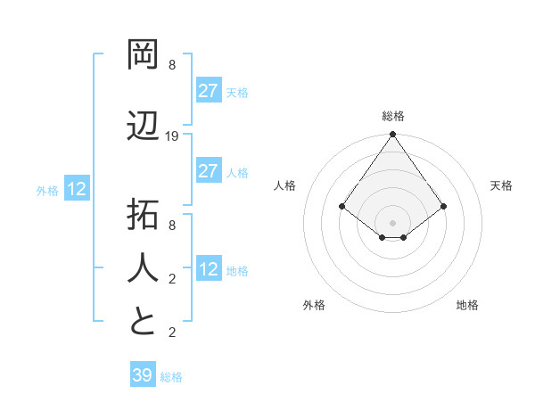 岡辺 拓人とさんを姓名の画数から五運を鑑定