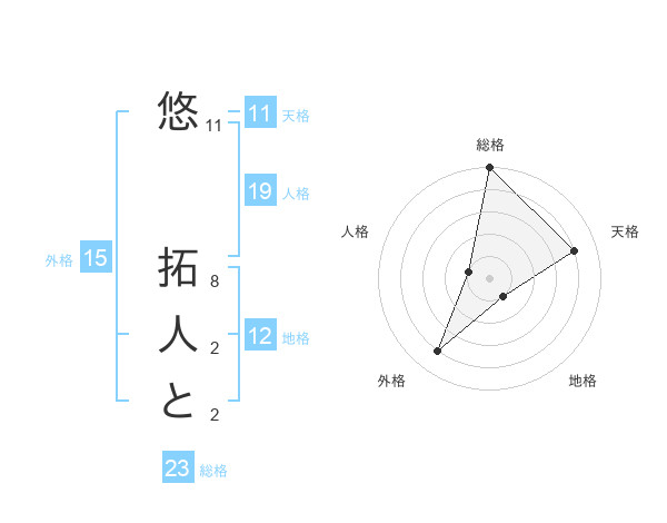 悠 拓人とさんを姓名の画数から五運を鑑定