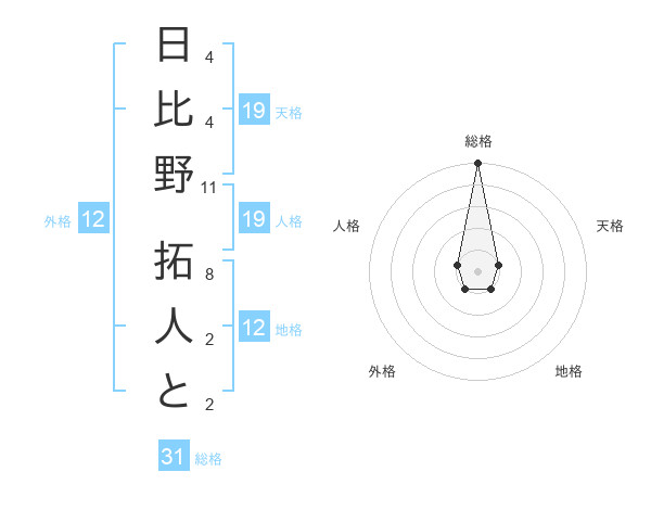 日比野 拓人とさんの天格は19画の1点!