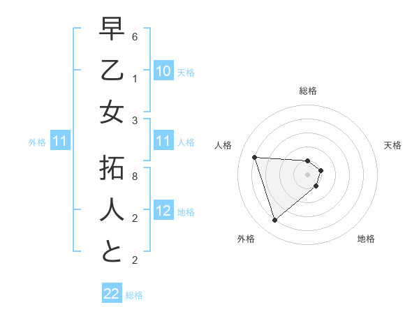 早乙女 拓人とさんを姓名の画数から五運を鑑定