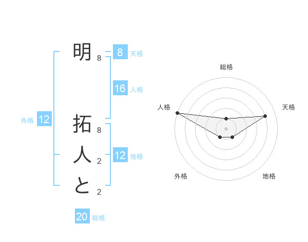 明 拓人とさんの総格は20画の1点!