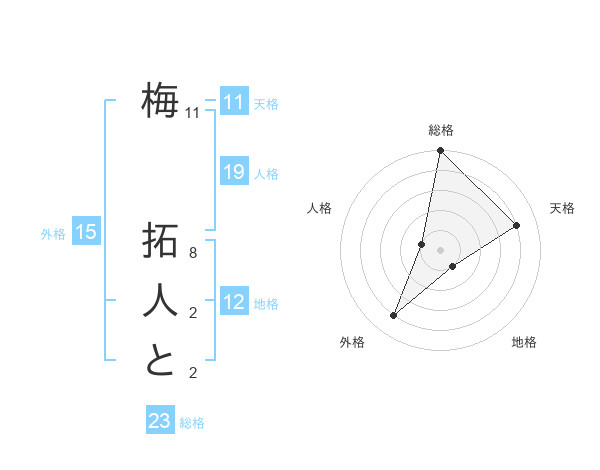 梅 拓人とさんを姓名の画数から五運を鑑定