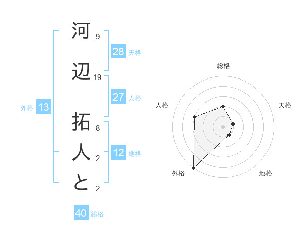 河辺 拓人とさんを姓名の画数から五運を鑑定