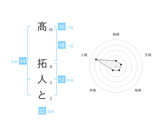 髙 拓人とさんの天格は10画の1点!