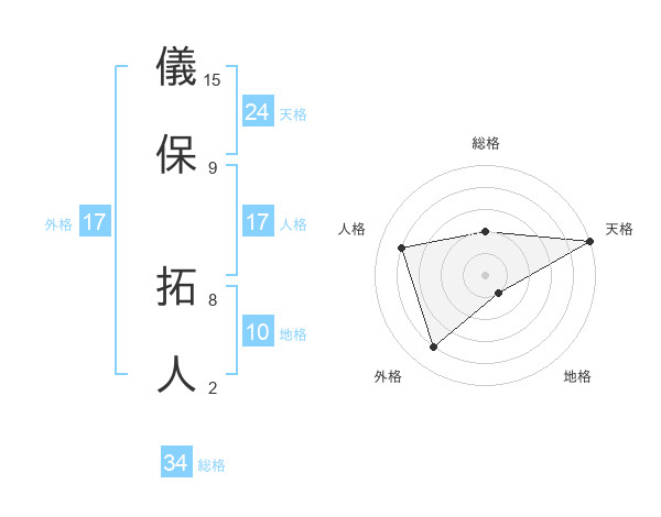 儀保 拓人さんの外格は17画の4点!