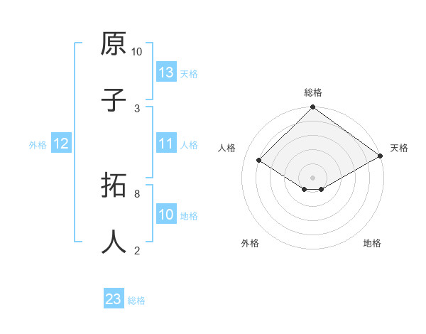 原子 拓人さんの総格は23画の5点!