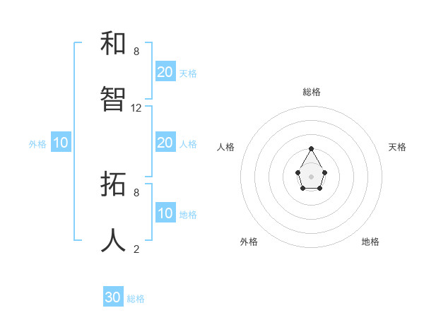 和智 拓人さんの天格は20画の1点!