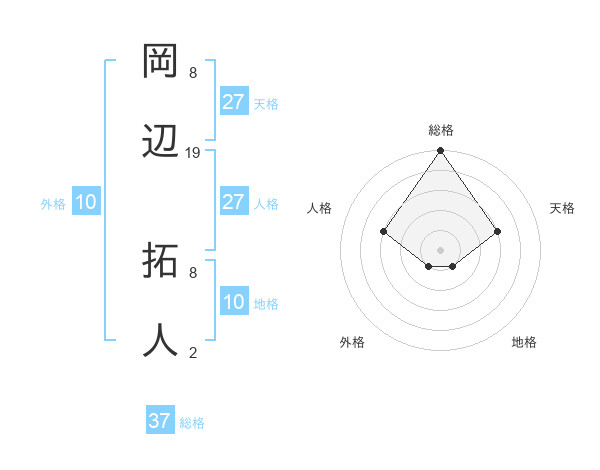 岡辺 拓人さんの総格は37画の5点!