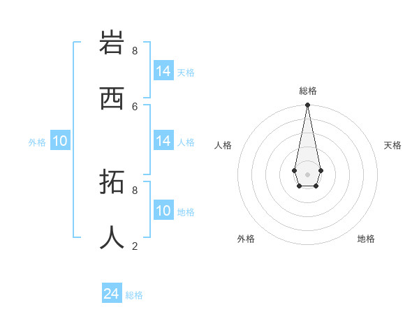 岩西 拓人さんを姓名の画数から五運を鑑定