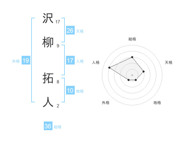 沢柳 拓人さんの天格は26画の2点!