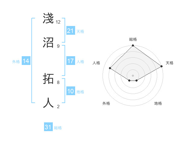 淺沼 拓人さんを姓名の画数から五運を鑑定