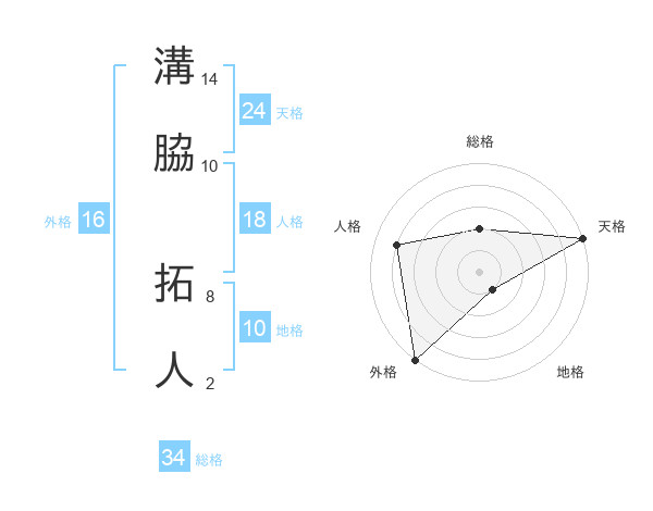 溝脇 拓人さんの天格は24画の5点!