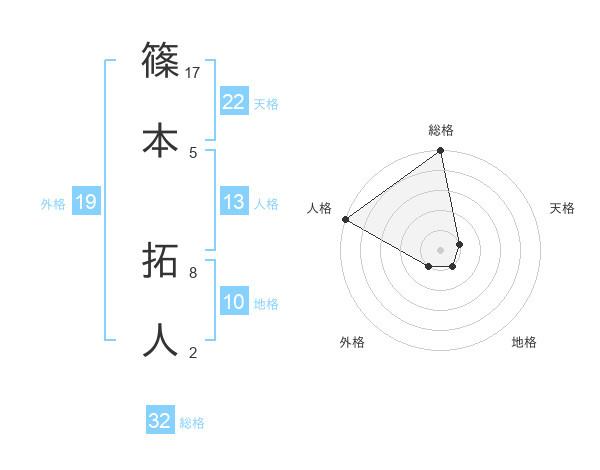 篠本 拓人さんを姓名の画数から五運を鑑定