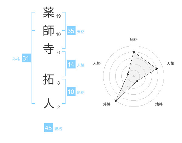 薬師寺 拓人さんを姓名の画数から五運を鑑定