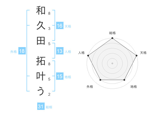和久田 拓叶うさんを姓名の画数から五運を鑑定