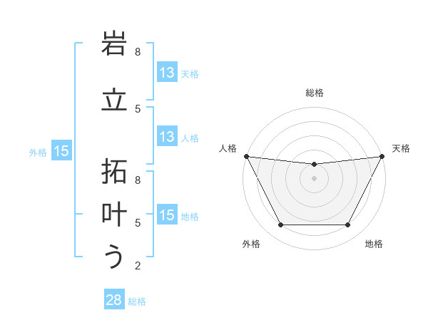 岩立 拓叶うさんの天格は13画の5点!