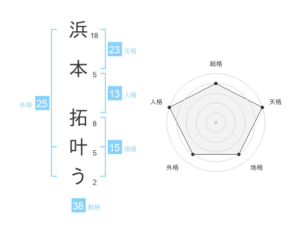 浜本 拓叶うさんを姓名の画数から五運を鑑定