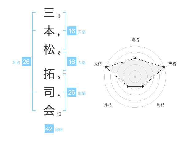 三本松 拓司会さんを姓名の画数から五運を鑑定