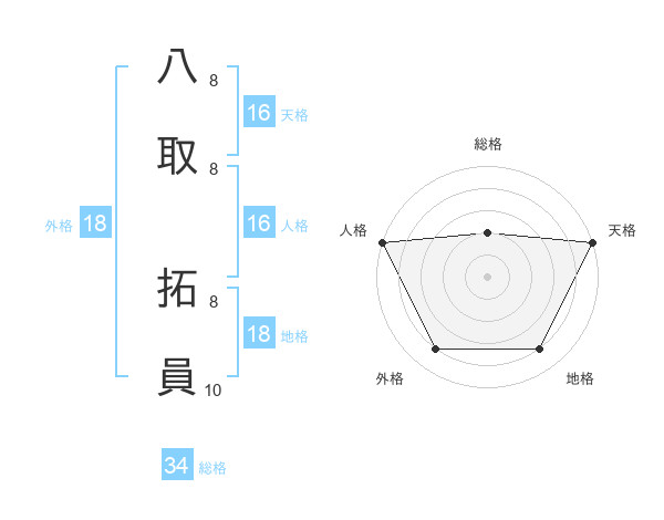 八取 拓員さんの天格は16画の5点!