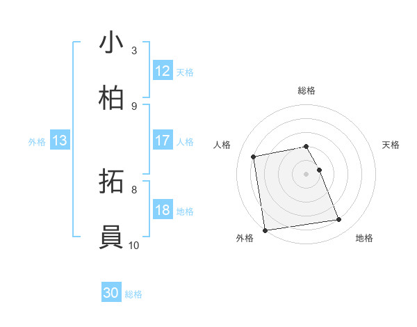 小柏 拓員さんを姓名の画数から五運を鑑定
