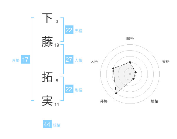 下藤 拓実さんの総格は44画の2点!
