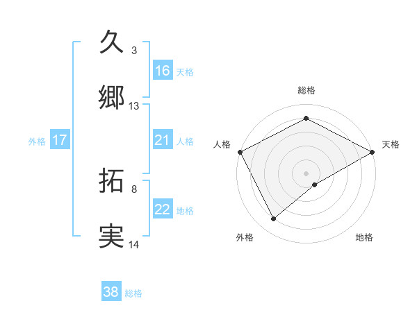 久郷 拓実さんの総格は38画の4点!
