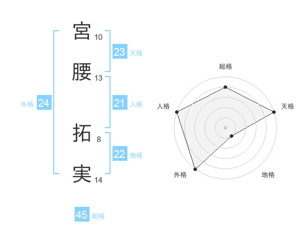 宮腰 拓実さんを姓名の画数から五運を鑑定