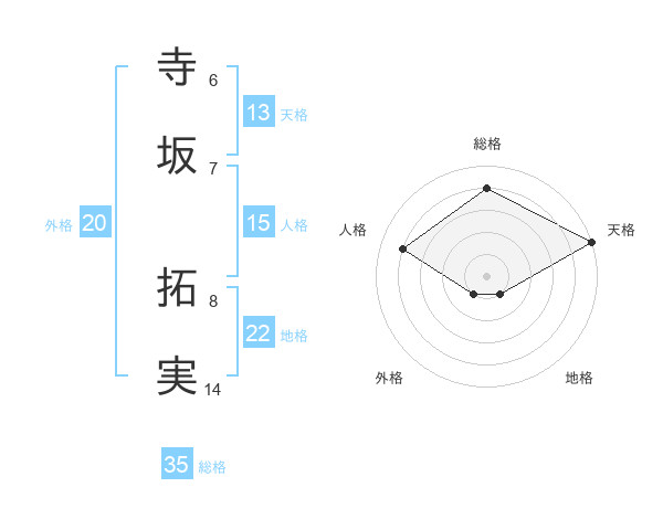 寺坂 拓実さんを姓名の画数から五運を鑑定
